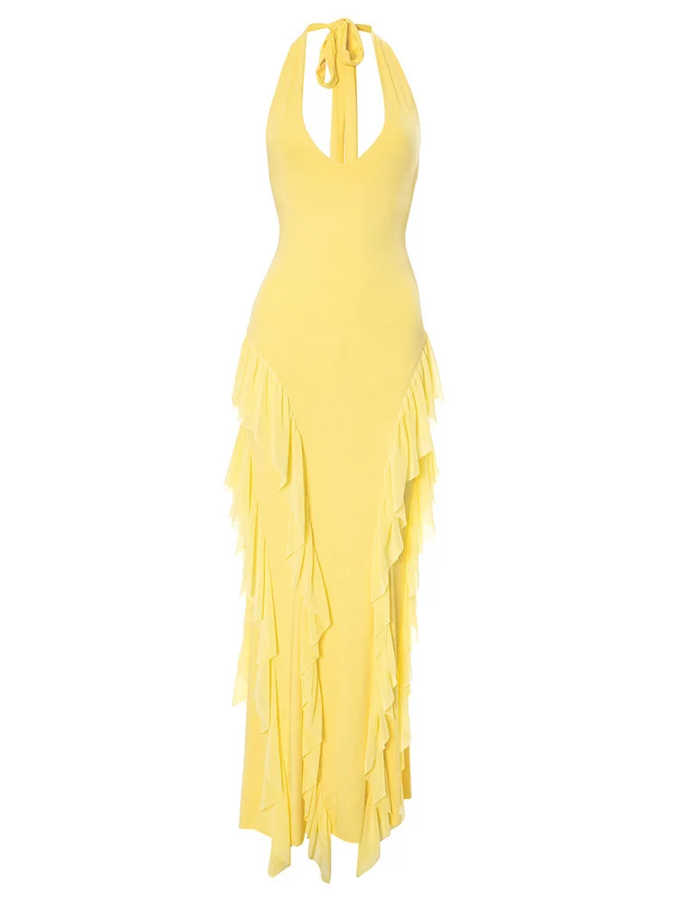 Summer dresses 2025 new backless camisole yellow long dress luxury elegant dress dresses summer cotton ladies robe femme soiree
